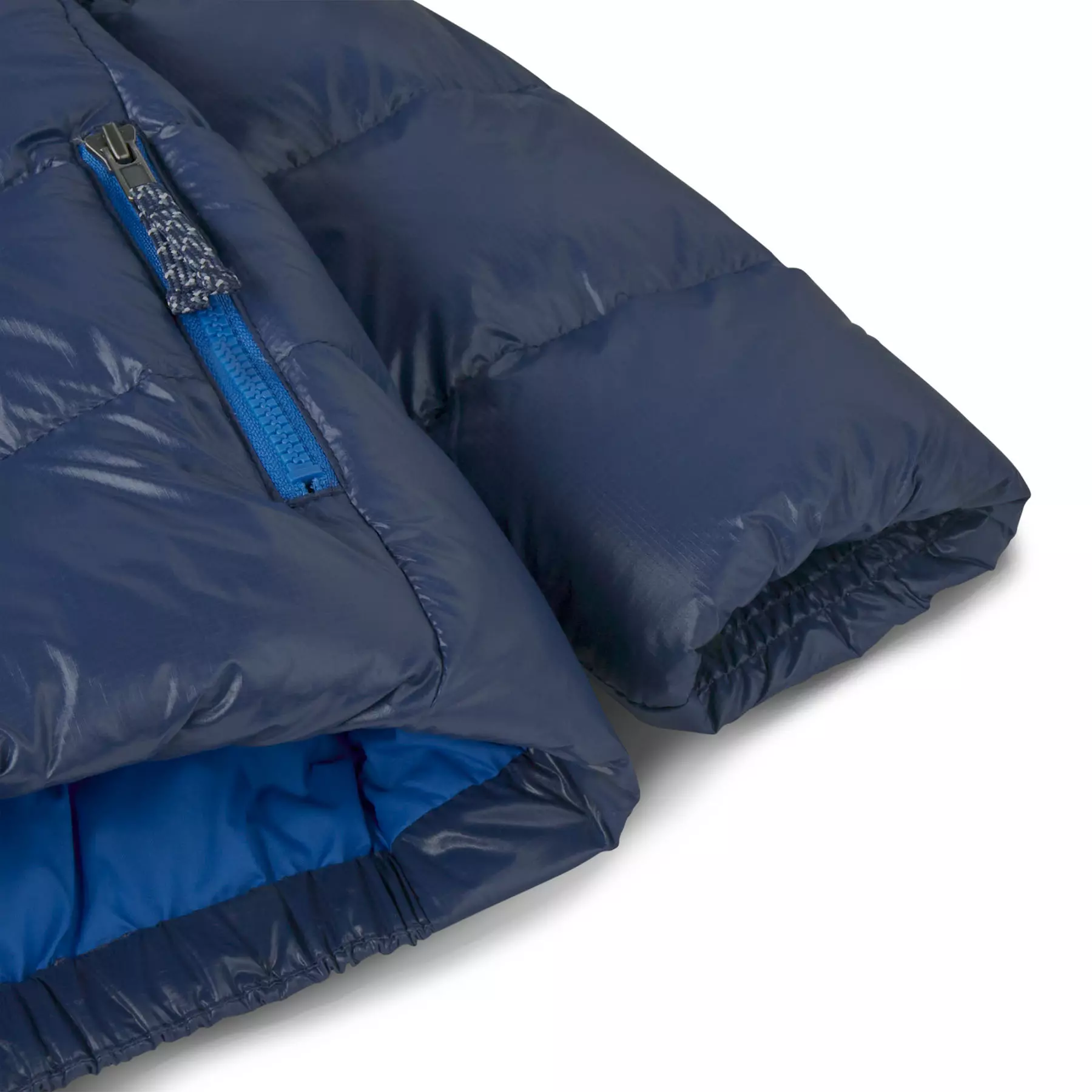 This is our warmest down jacket for babies. It layers easily and has an insulated hoody and soft, smocked internal elastic at the cuffs to keep out drafts. The shell fabric is NetPlus® 100% postconsumer recycled nylon ripstop made from recycled fishing nets to help reduce ocean plastic pollution. Insulated with warm, compressible 700-fill-power 100% Recycled Down (duck and goose down reclaimed from down products).