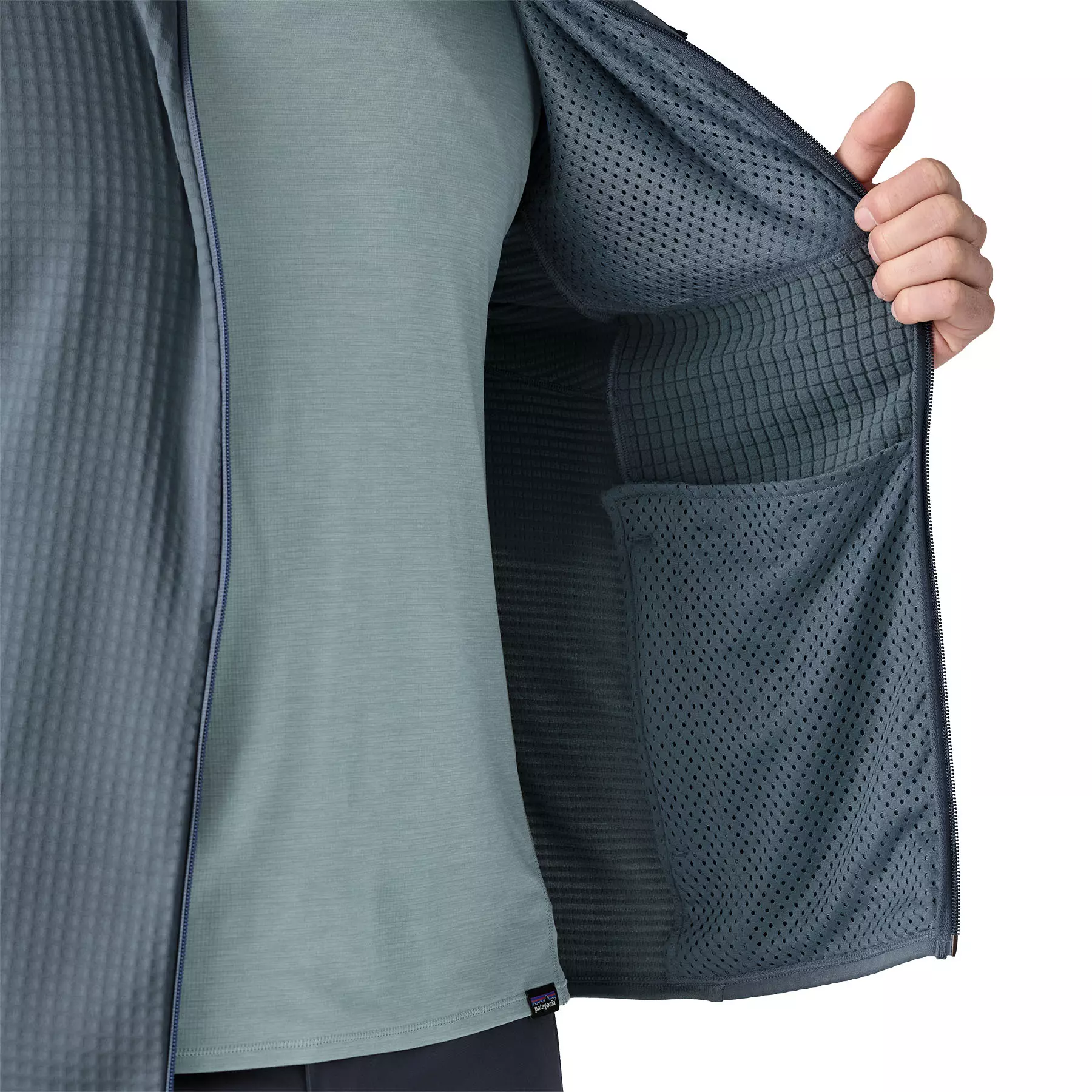 Durable, stretchy and breathable Polartec® Power Grid™ fabric is hybridized with our Capilene® Thermal Weight baselayer fabric to reduce bulk and make this lightweight layer even lighter; with HeiQ® Pure odor control to keep things fresh