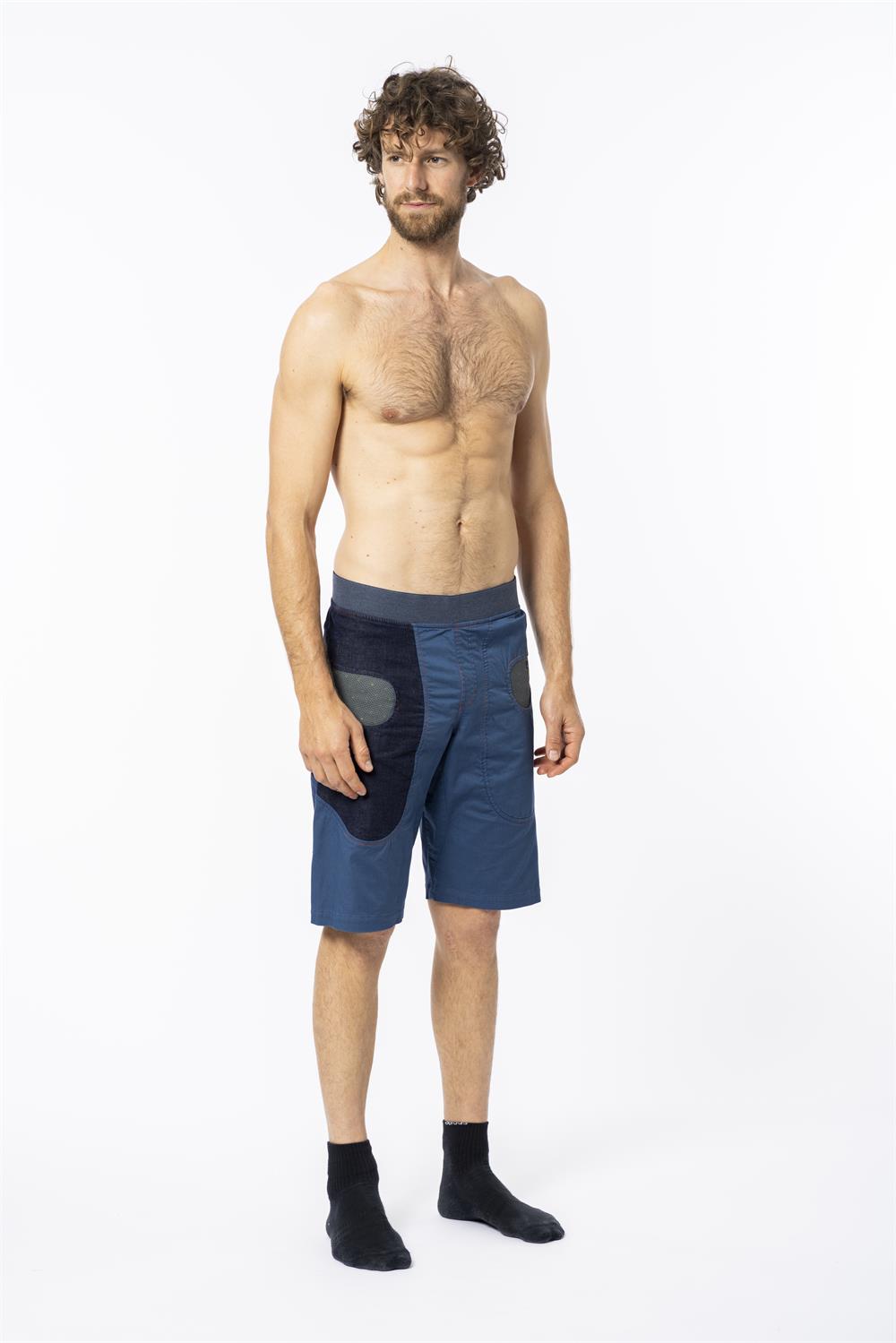 The Short Gulp is designed for comfort and movement — crafted from a soft yet durable stretch-cotton blend with an elastic waistband and a wedge under-crotch insert for enhanced freedom of motion. Practical side and back pockets add utility, while the bold right-leg colour-contrast or tone-on-tone design pocket adds a distinctive look. Ideal for active days, climbing or casual outdoor use.