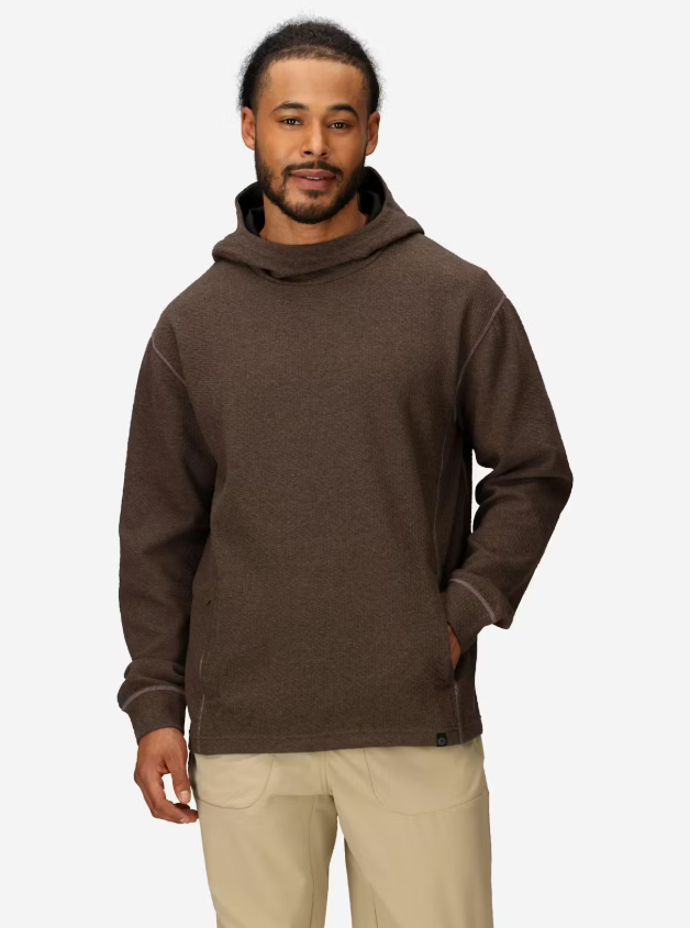 Marmot Ridge Tech Hoody е универсална дреха, съчетаваща комфорт и практичност. Материята е с структуриран външен слой и мека вътрешна повърхност, което осигурява приятно усещане при носене и допълнителна издръжливост. Комбинацията от памук, рециклиран полиестер и еластан осигурява добра еластичност, свобода на движение и дишаемост през целия ден.